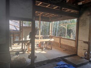 手前の水回り棟は一番新しいのですが、シロアリ食害にあって、